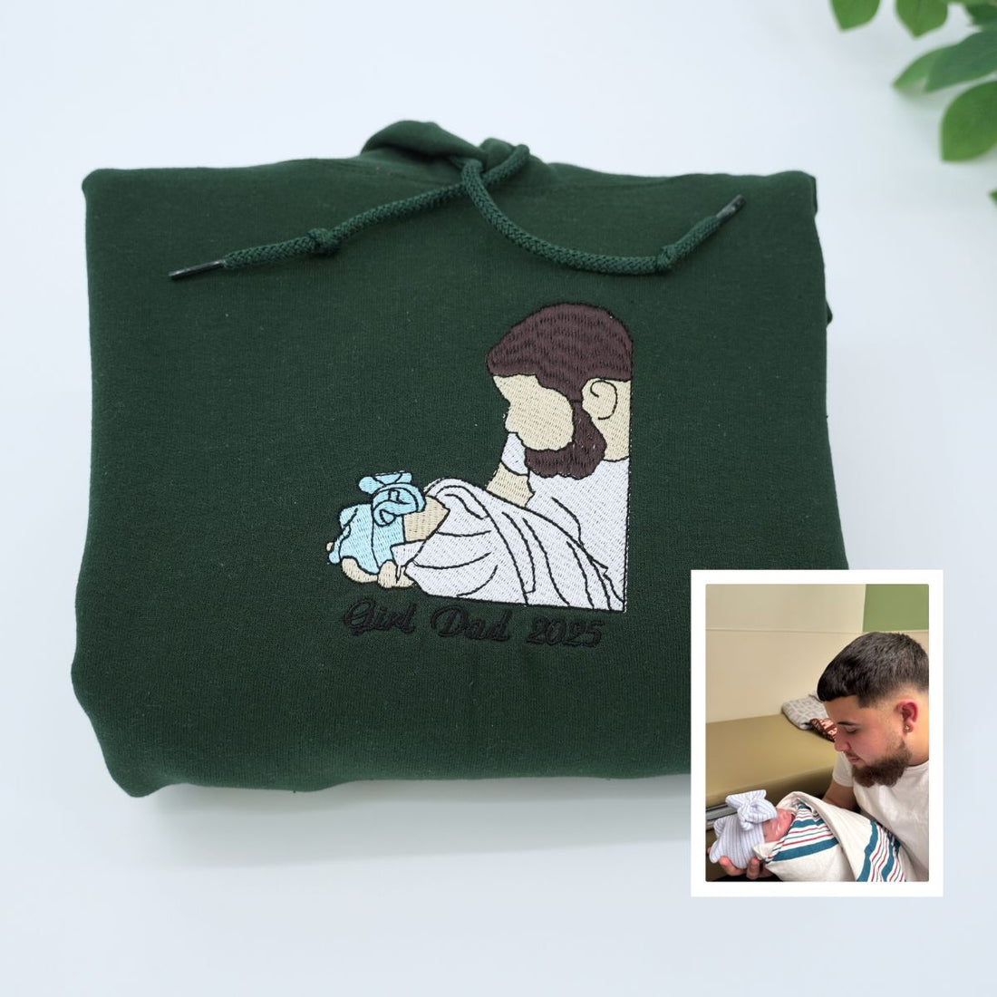 Celebrate dad with a personalized embroidered hoodie featuring a portrait of his child. Made from...