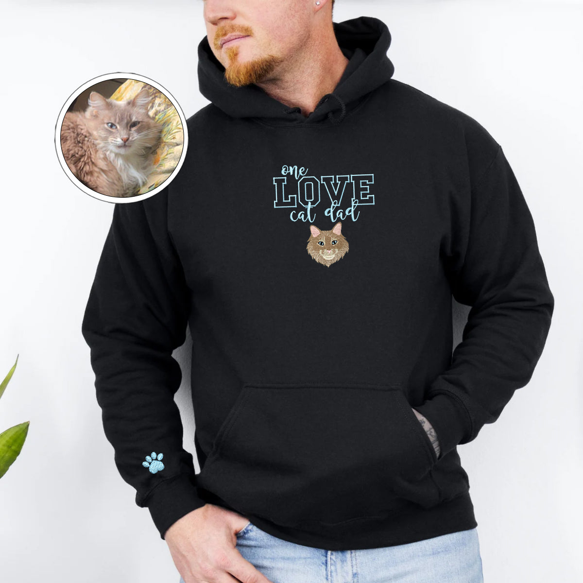 Custom Embroidered Hoodie, One Love Cat Dad for Cat Lovers